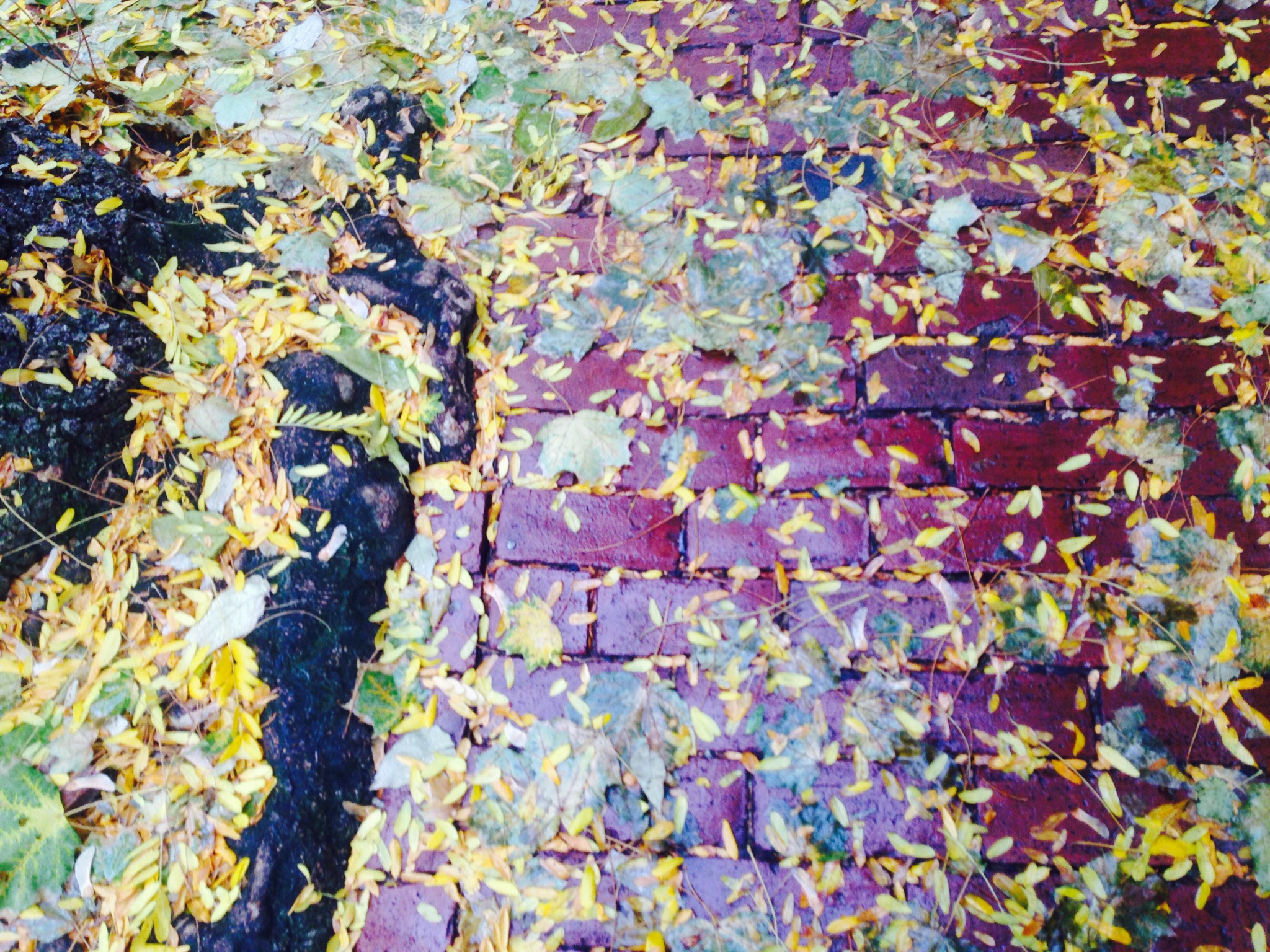 Today was a rainy day. When I woke up, the sky was grey and by mid-afternoon a light drizzle had settled in, cozy in its new location. The trees have started turning here and the sidewalks were filled with nature’s confetti.