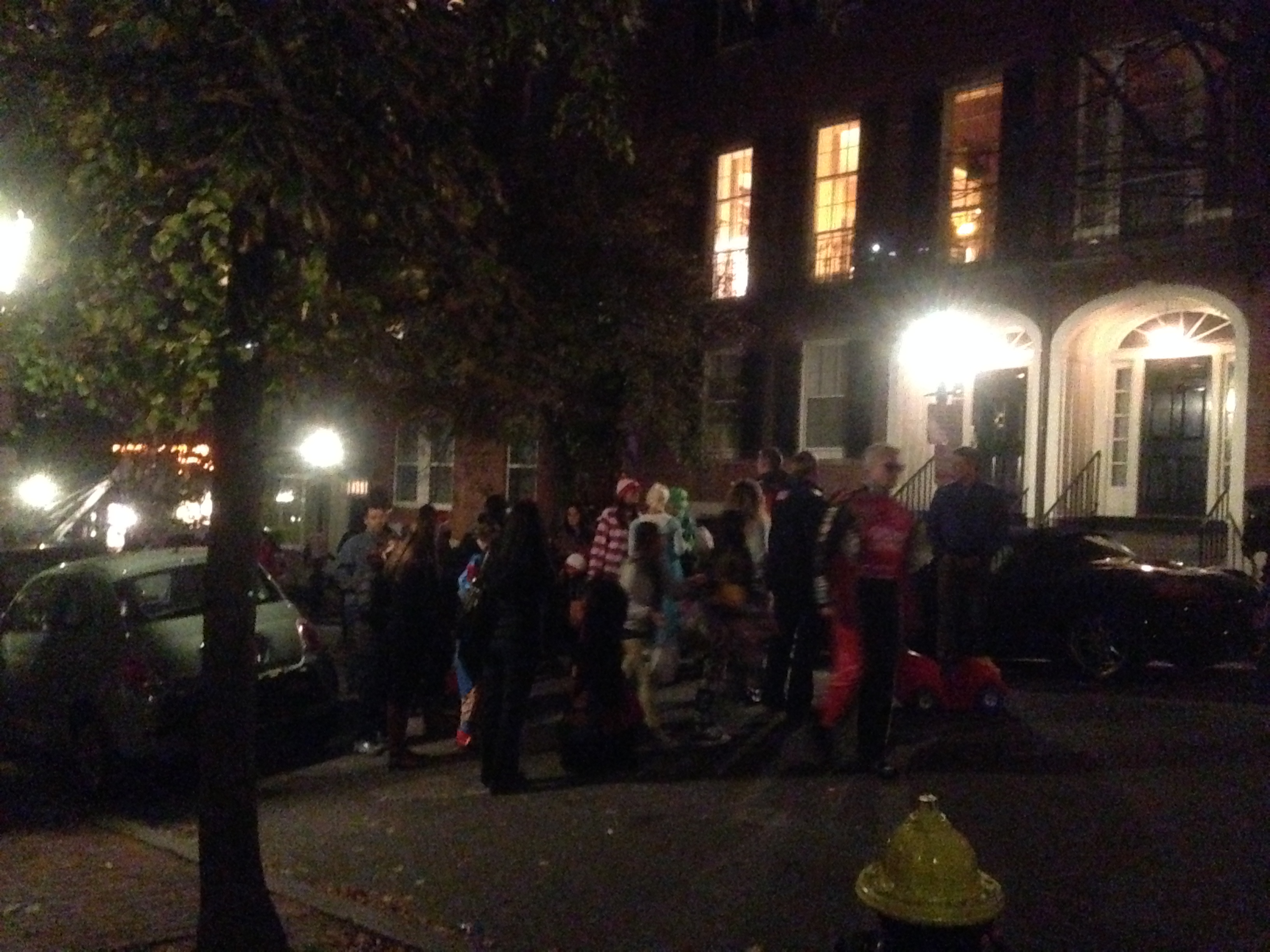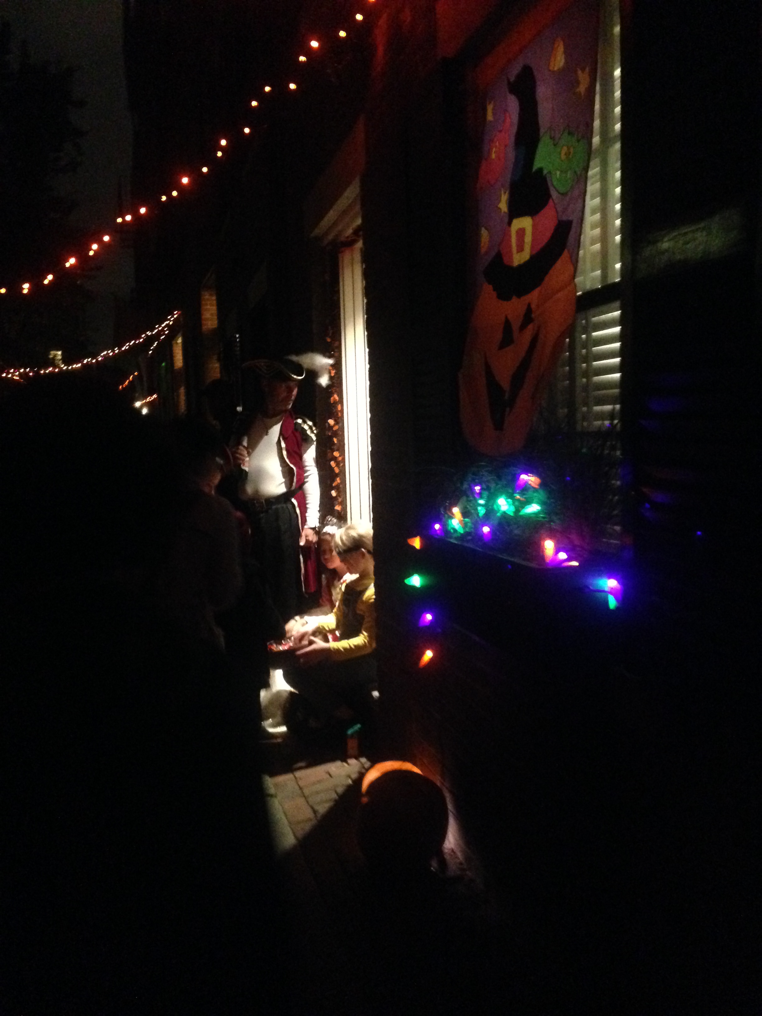 I’ll leave you with other fun pics from the night. Families were out in full force – children and adults dressed up in Halloween finery – children with candy crammed everywhere they could fit it – adults with beverages in red solo cups. It was a fun night and I’d invite friends to come stay with me next Halloween so we can take your kids out together – what FUN that would be!!